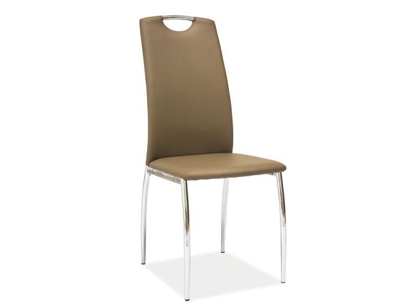 Элегантный мягкий стул H-622 SIGNAL с увеличенной спинкой для комфортного отдыха. Обивка из экокожи в шести цветовых вариантах: голубой, темно-бежевый, серый, коричневый, латте или черный. Блестящий металлический каркас, покрытый хромом, придает изделию модный и блестящий вид.